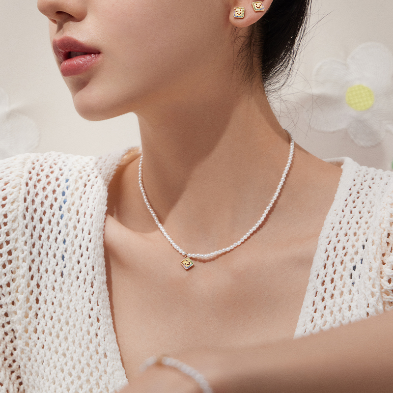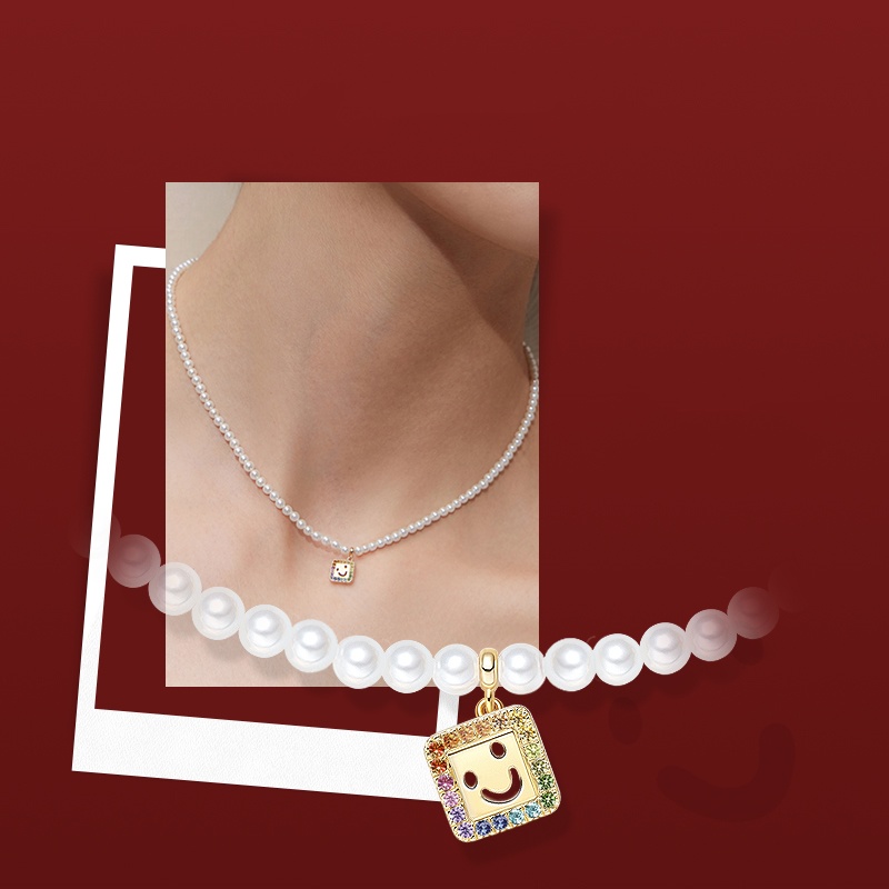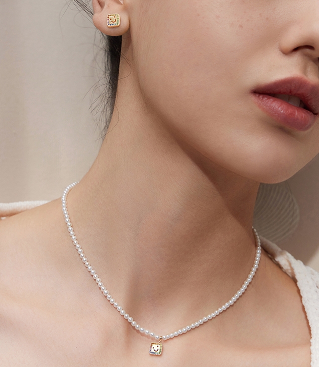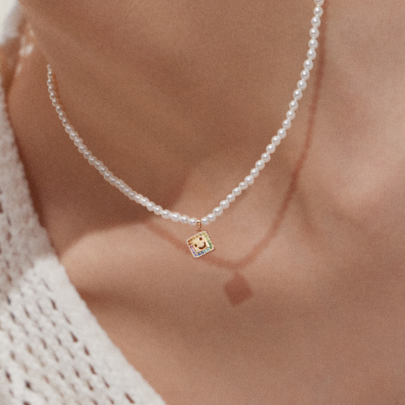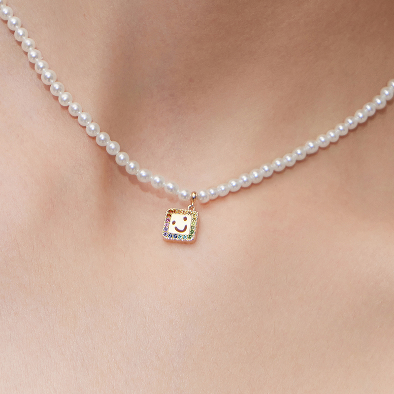 Smiley Pearl Necklace (Rainbow)