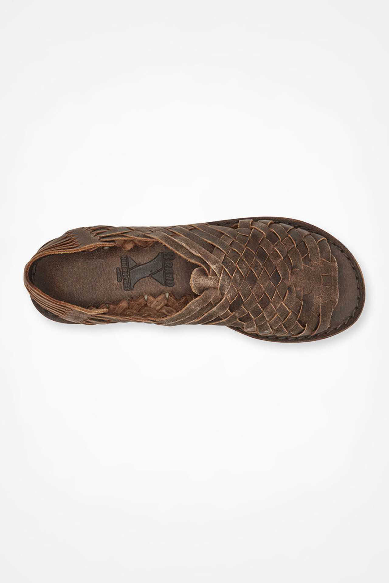 详情Authentic huaraches are beautifully handwoven by Mexican artisans in traditional style ?C and made to last. Vegetable-tanned leather creates exceptional softness, comfort and durability, while intricate weaving patterns make them flexible and breathable. EVA midsoles provide shock-absorption and resilience.###