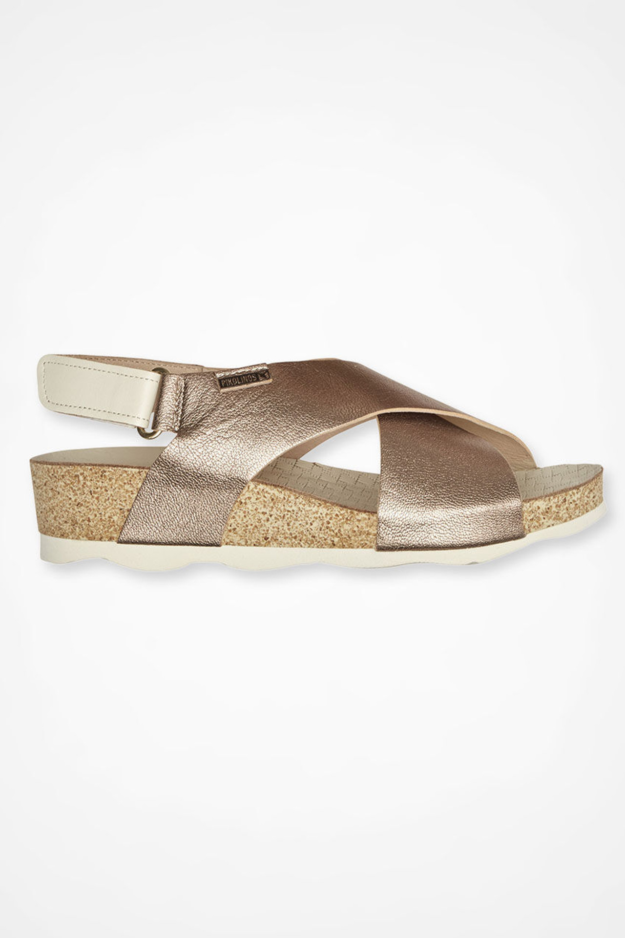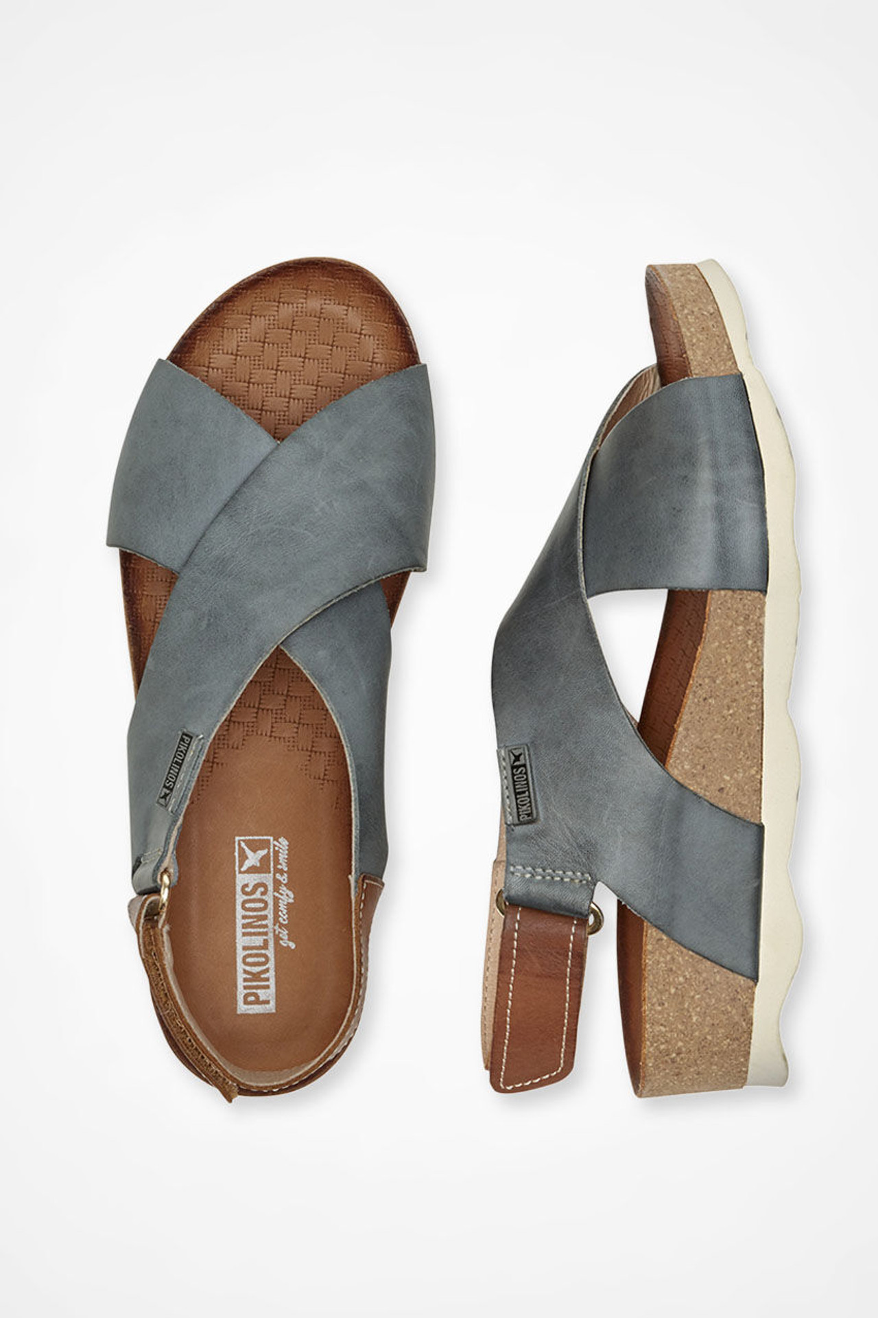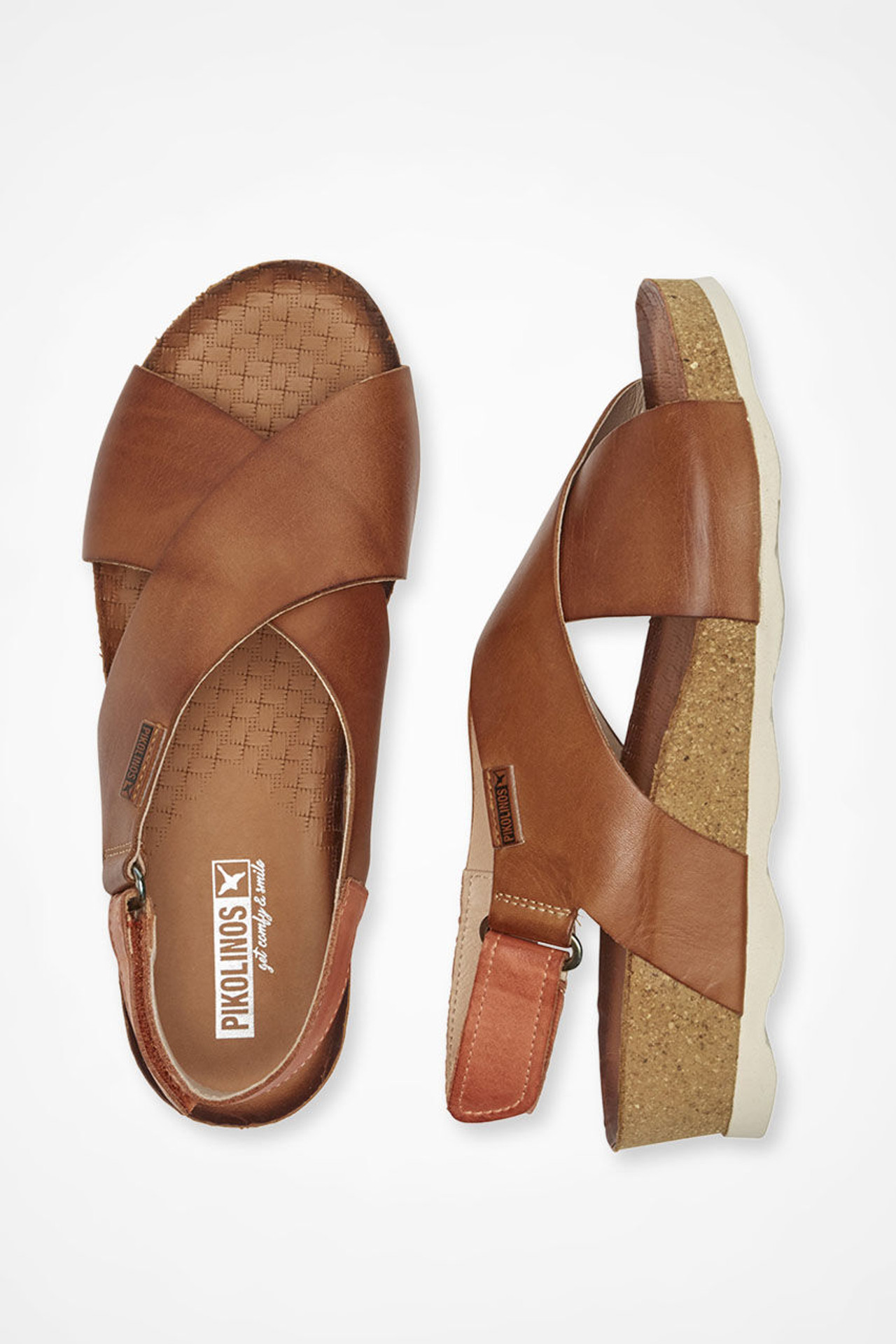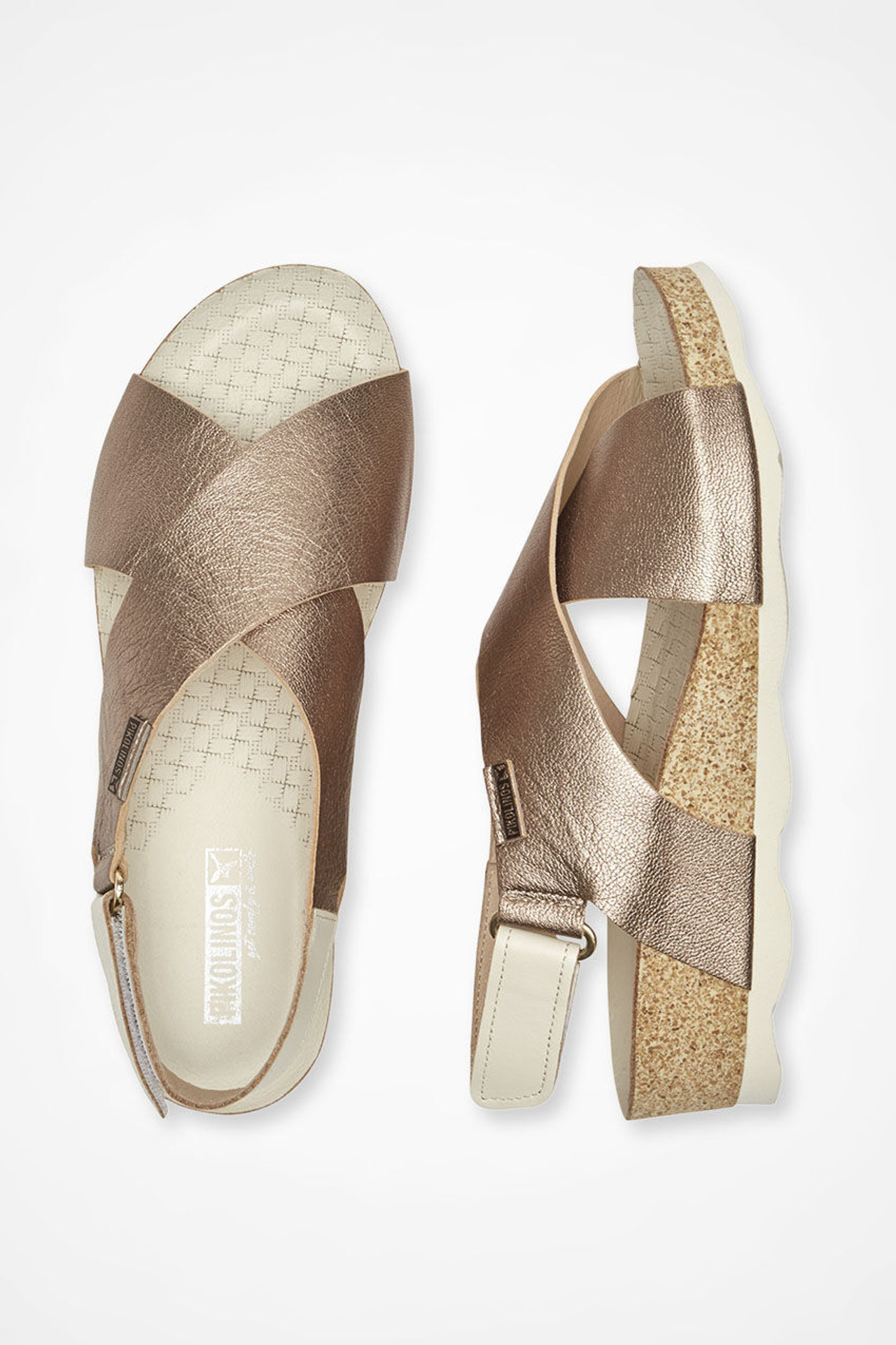 详情Streamlined, European-inspired and so comfortable. Cushioned sandals have soft, premium leather uppers and lining, hook-and-loop closures and cork-textured platforms.###