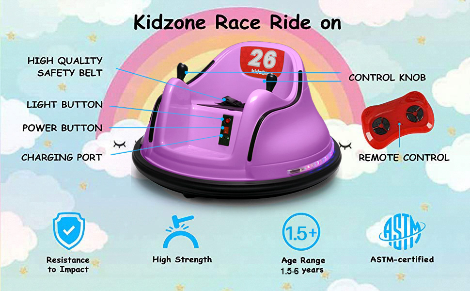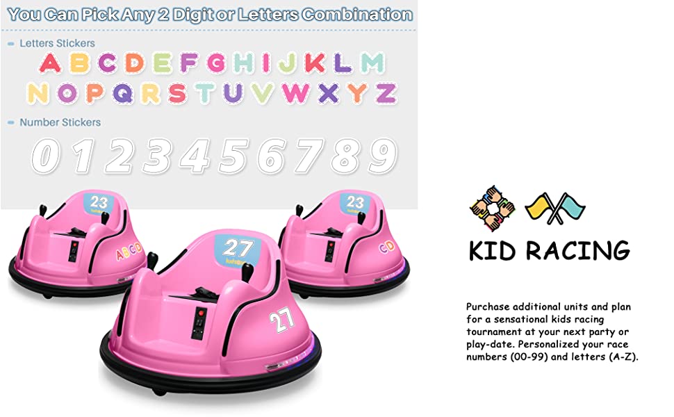 - [CUSTOMIZABLE] Let your kid decorate this bumper car with the DIY numbers and letters stickers to spark more creativity. No assembly required, simply connect the battery wire and let the fun begin!