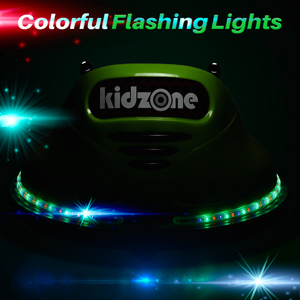 The bumper car with colorful flashing lights. No assembly, Simply connect the battery wire and its ready to go straight out of the box.
