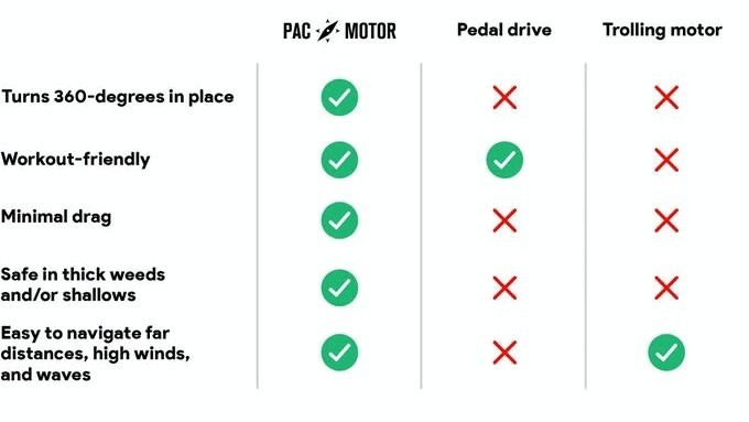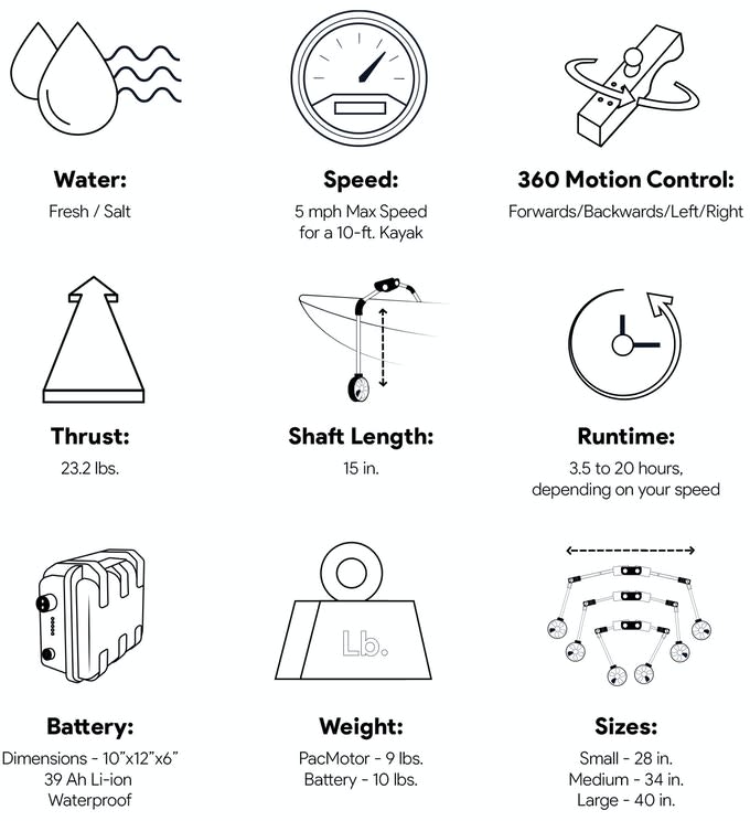 revolutionary portable system that frees you from paddling and makes kayaking accessible for everyone.Your kayak is motorized and ready to go in less than 5 minutes,Enjoy the scenery or more relaxed fishing-
