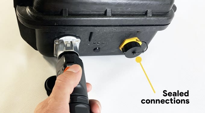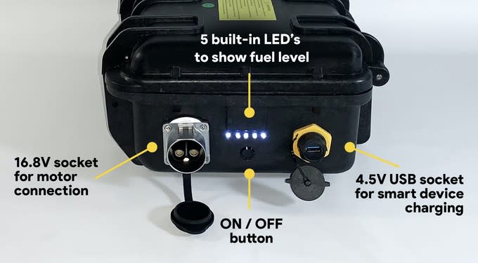 This is compatible with all 12V-20V marine batteries or Li-Ion battery packs. You can easily attach it to a battery of your own by using the negative and positive leads cable. The battery box smoothly connects to the motor. An easy-to-read indicator on the motor displays the remaining charge in the battery pack.