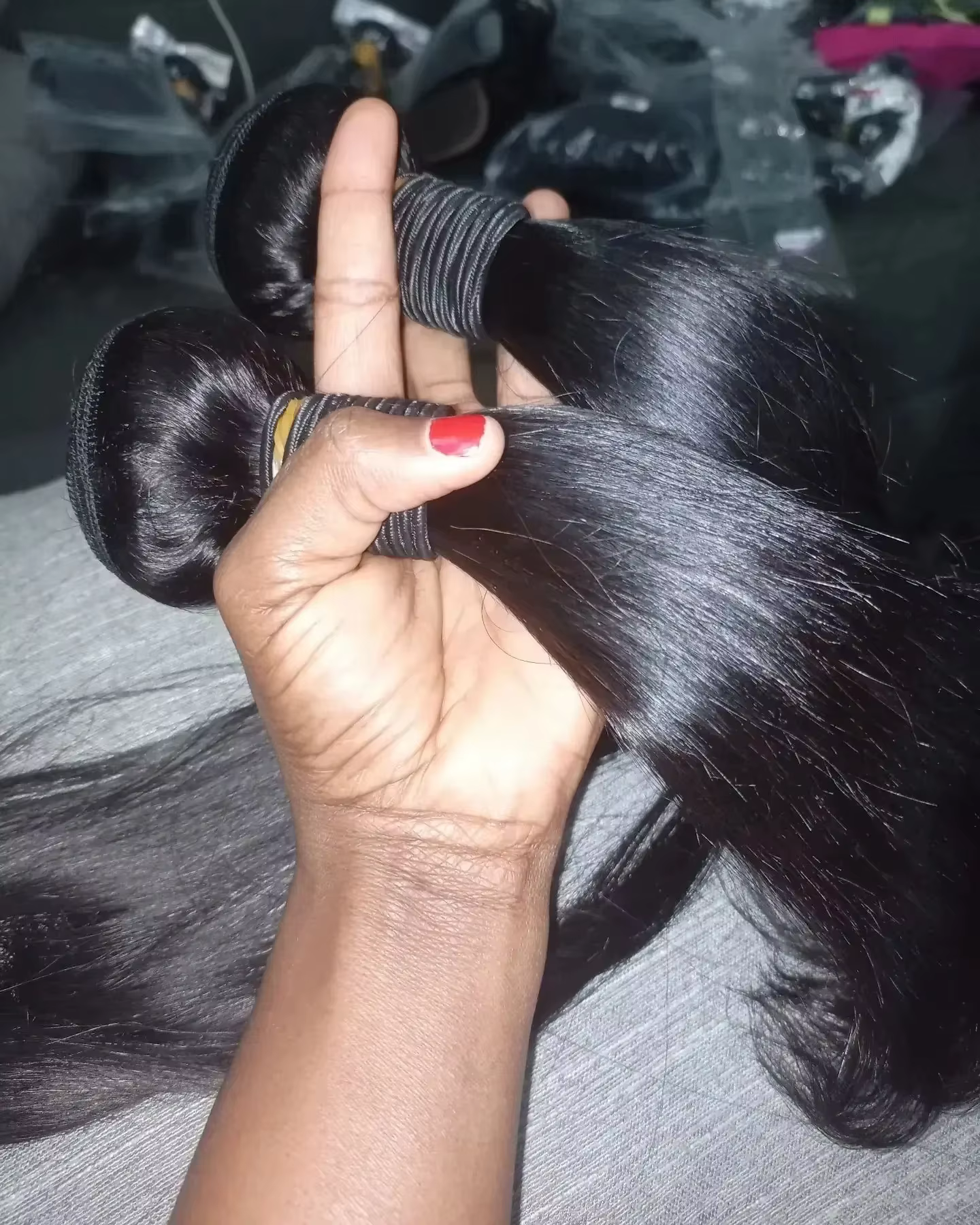Definitely going to keep buying this straight bundles human hair over and over. It's beautiful after just washing it, and it was super easy to style in other ways! I will definitely be a returning customer.